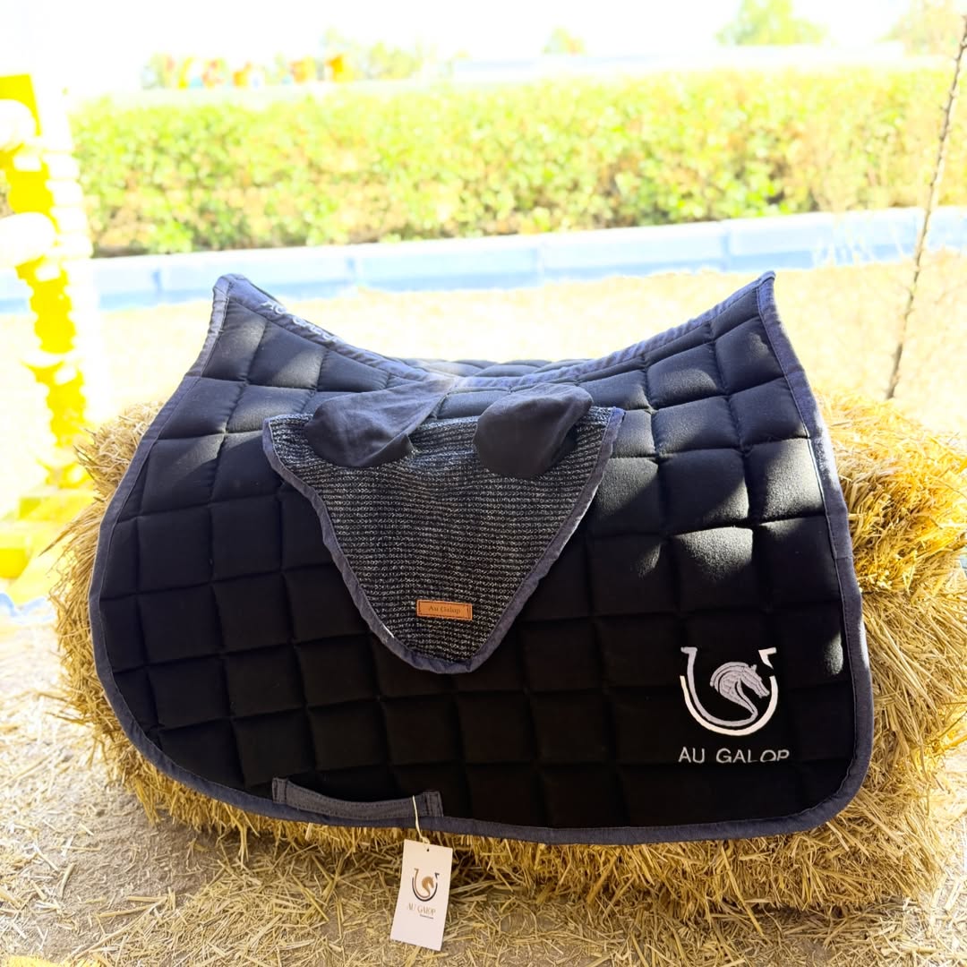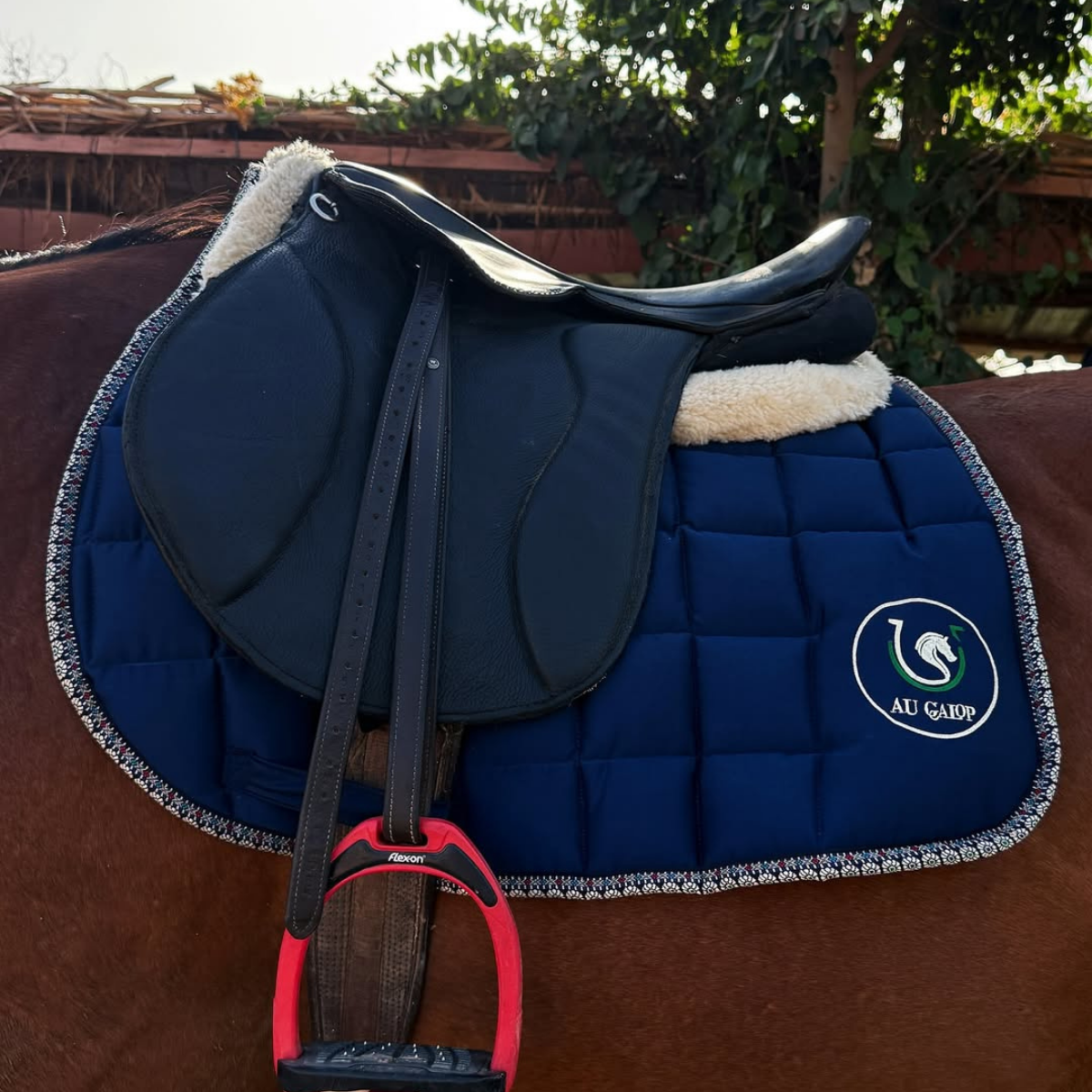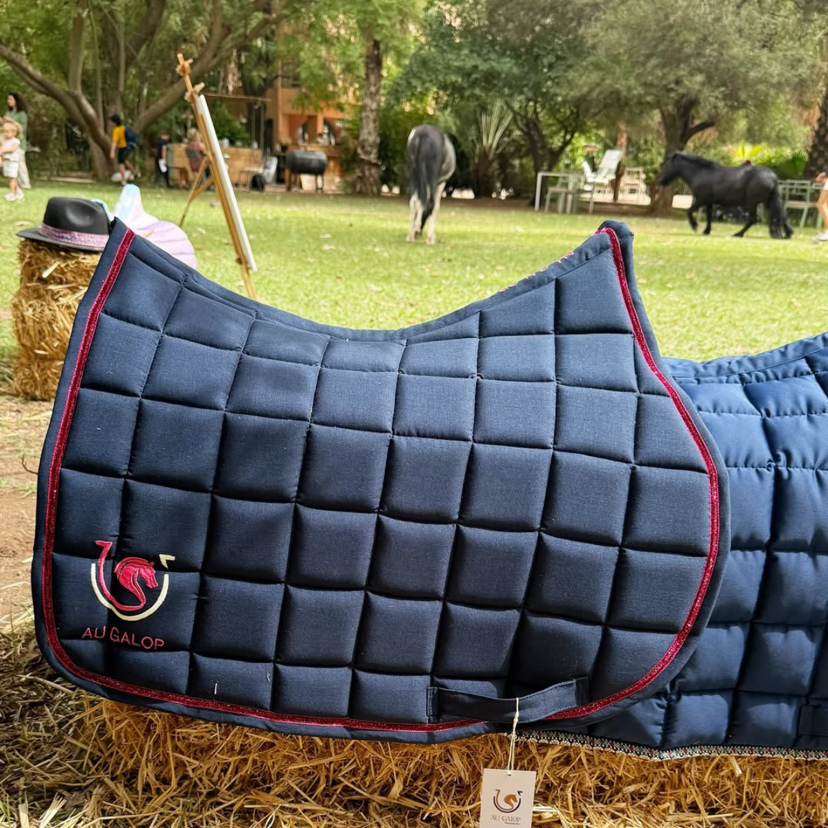 Les tapis de selle sans motifs Au Galop s’adressent aux cavaliers qui recherchent une élégance discrète, intemporelle et parfaitement maîtrisée.