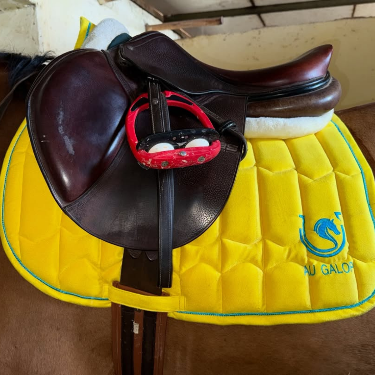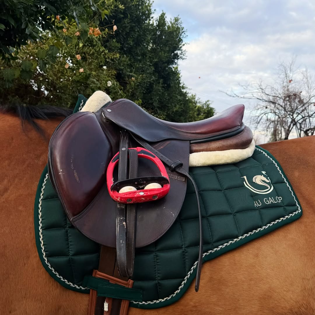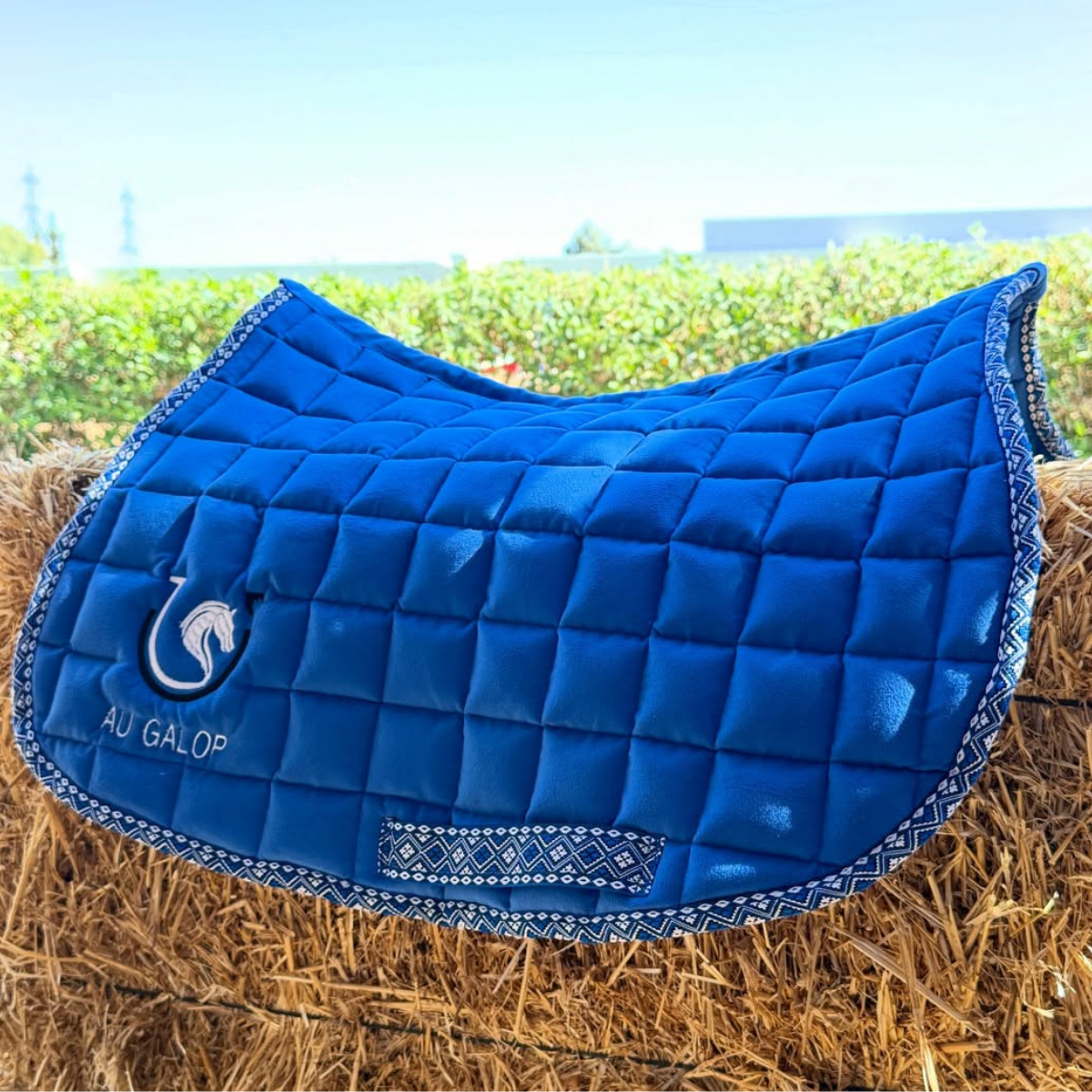 Les tapis de selle sans motifs Au Galop s’adressent aux cavaliers qui recherchent une élégance discrète, intemporelle et parfaitement maîtrisée.
